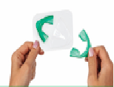 ④ 内側の白いトレイを歯に残したまま、外側のトレイ(緑)だけを取り外します。